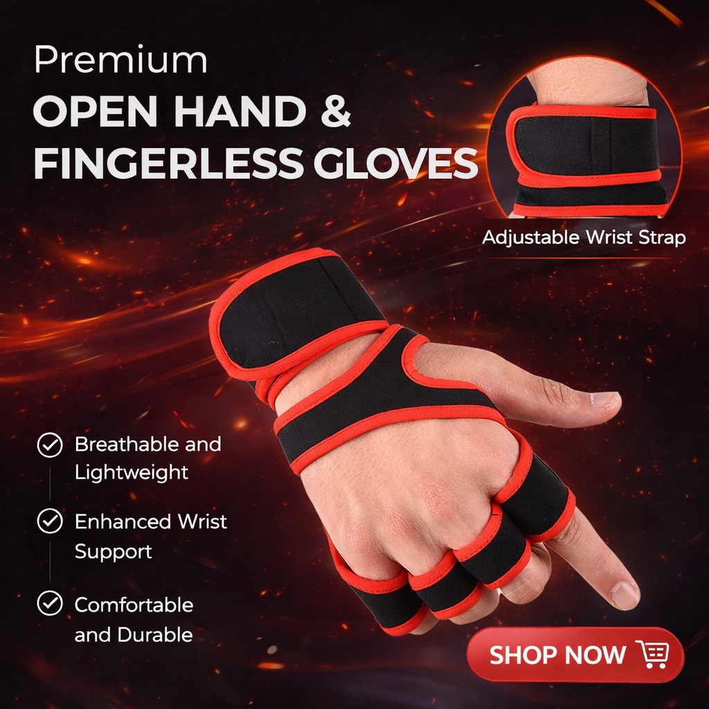 Găng tay gym hở ngón cao cấp, co giãn thoải mái, bám chắc, chống chai tay khi tập