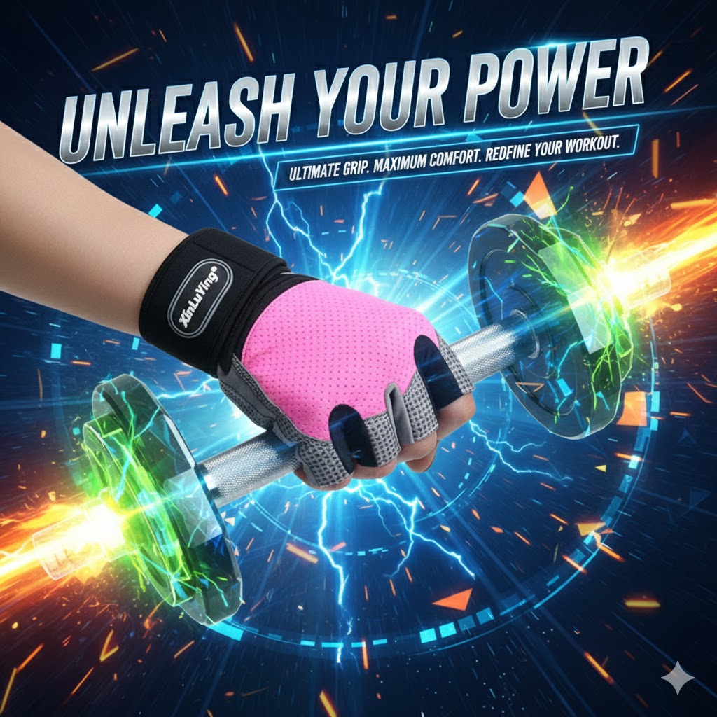 Găng tay gym nữ Xinluying có quấn cổ tay, thoáng khí, chống trượt, hỗ trợ tập luyện hiệu quả